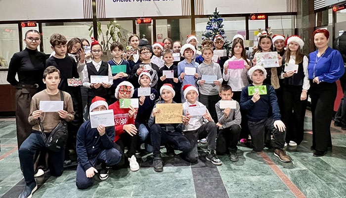 Astăzi, ne bucurăm de vizita elevilor clasei a V-a a Liceului Teoretic “Gaudeamus” la oficiul poștal 2012. Astfel, 30 de copii cu ochi sclipitori și zâmbete pline de căldură au venit să aducă scrisorile lor pentru Moș Crăciun.