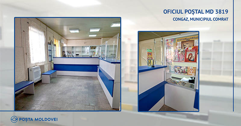 Oficiul poștal din satul Congaz, municipiul Comrat (MD-3819), a fost recent renovat pentru a îmbunătăți calitatea serviciilor poștale și financiare oferite locuitorilor din comunitate, deservind aproximativ 5.800 de persoane.